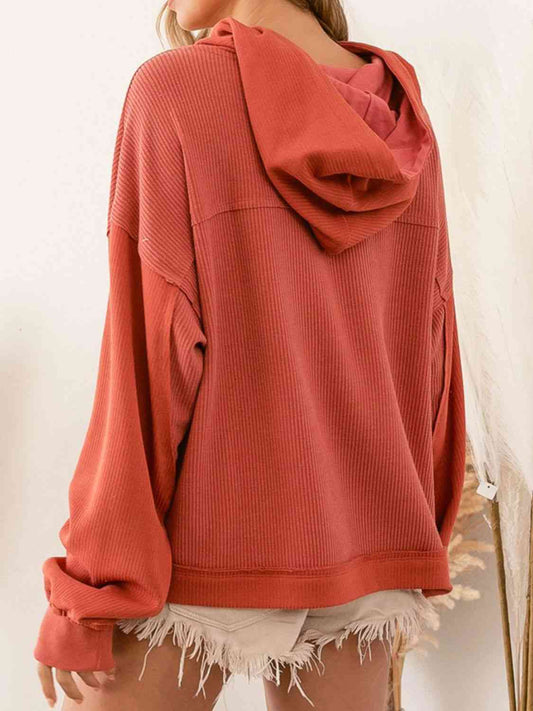 Zenana Half Snap Long Sleeve Hoodie with Pockets