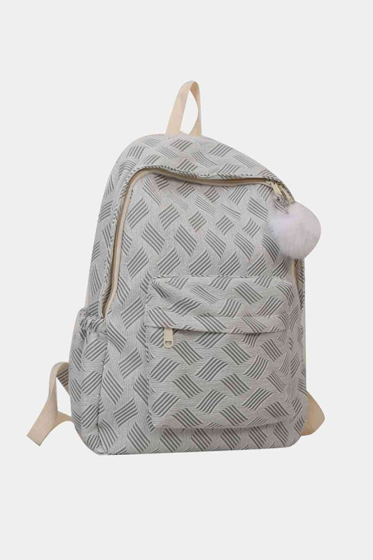 Printed Polyester Large Backpack (Fluffy Ball Included)