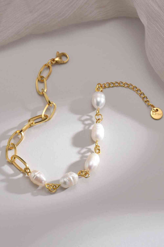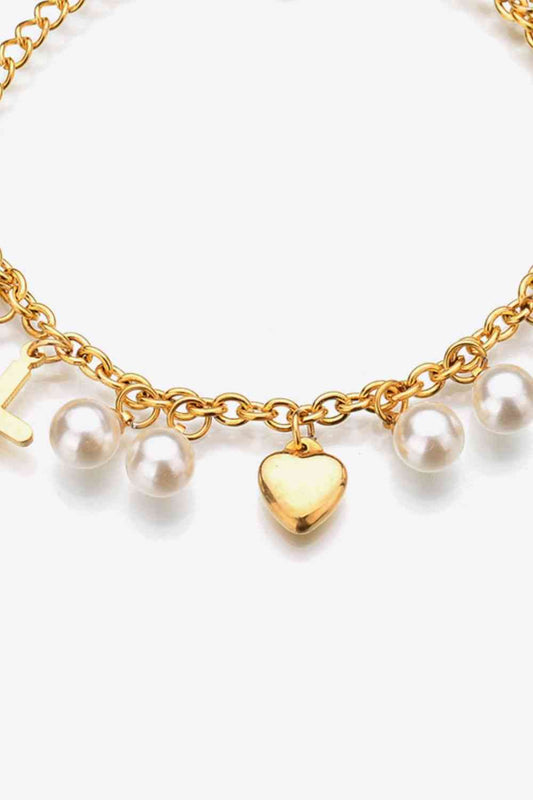 Heart Cross and Pearl Charm Stainless Steel Bracelet