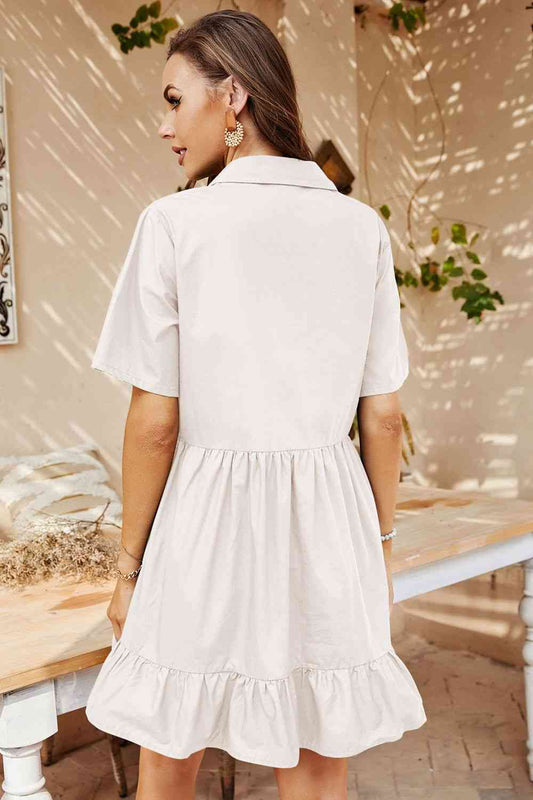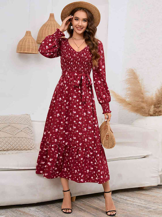 Smocked Balloon Sleeve Frill Trim Tiered Dress