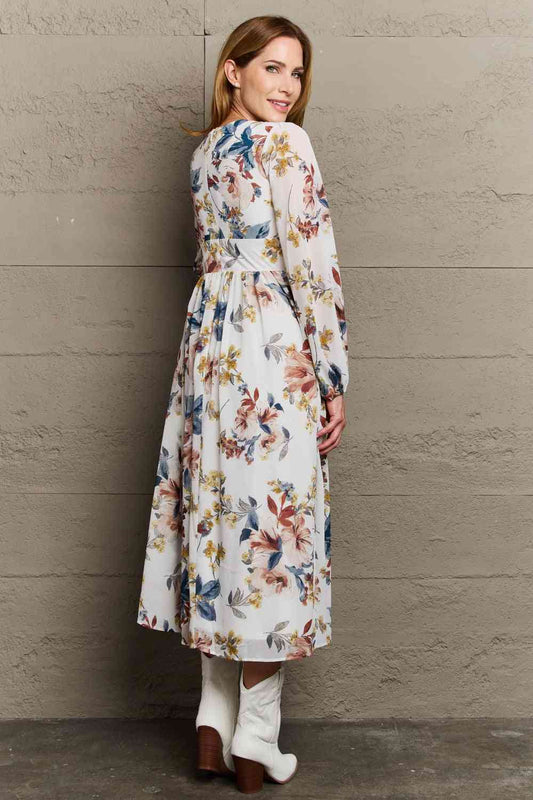 OneTheLand Good Day Chiffon Floral Midi Dress