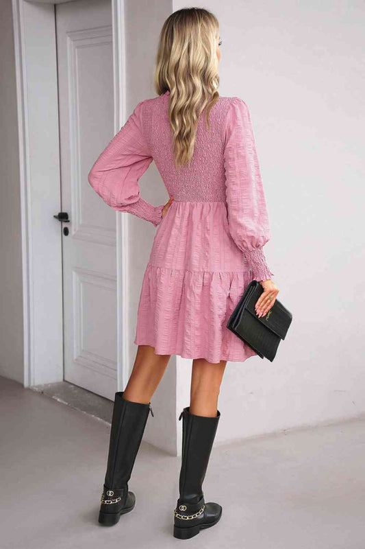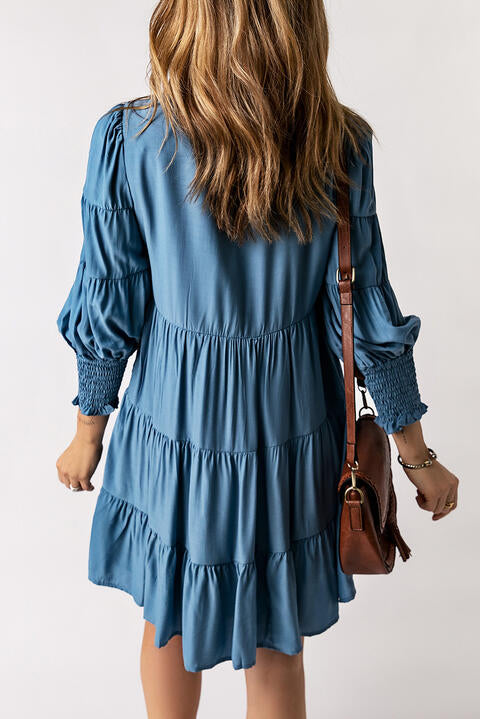 Sold outNotched Neck Puff Sleeve Dress