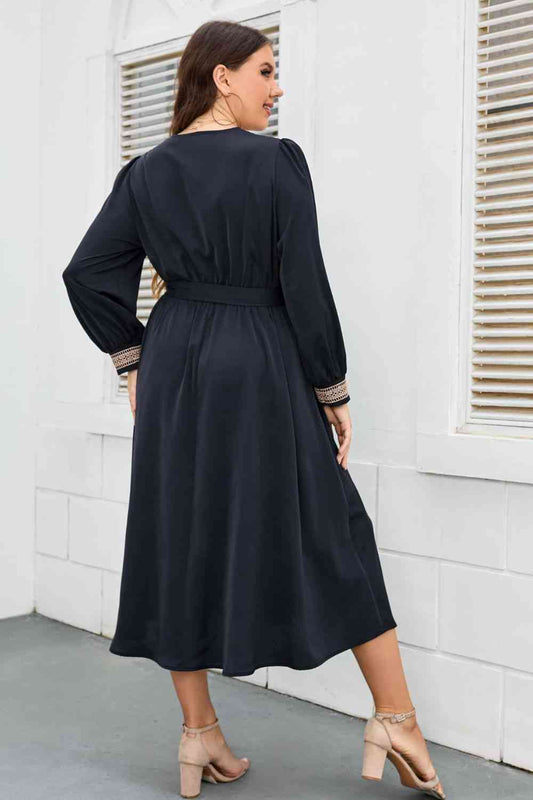 Melo Apparel Plus Size Contrast Tie Waist Midi Dress