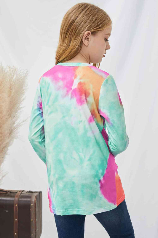 Girls Tie-Dye Twist Front Long Sleeve Top