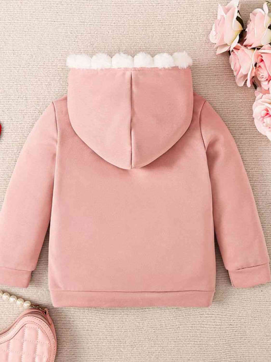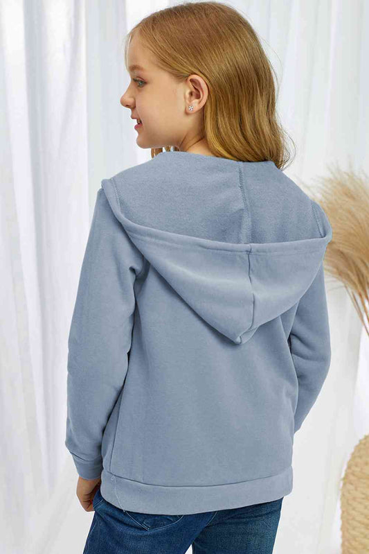 Girls Zip-Up Drawstring Hooded Jacket with Pockets
