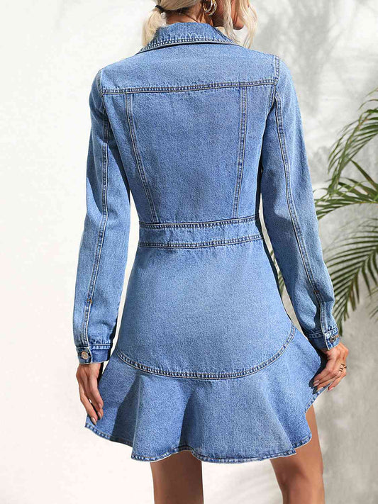 Raw Hem Slit Pocketed Midi Denim Skirt