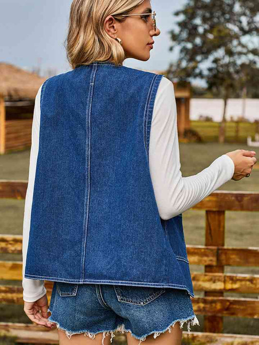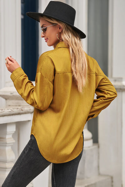 Collared Neck Dropped Shoulder Button-Down Denim Jacket