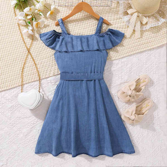 Ruffle Hem Tie-Back Flutter Sleeve Dress