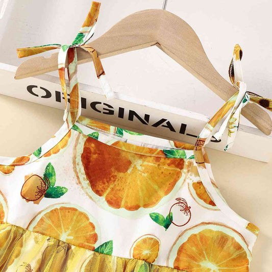 Girls Floral Bow Detail Ruffle Shoulder Tulle Dress