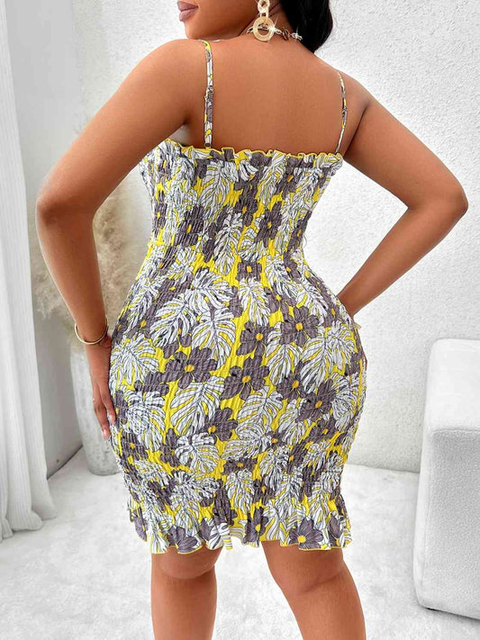 Plus Size Spaghetti Strap Cutout Ruffle Hem Dress