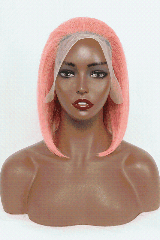 12" 165g Lace Front Wigs Human Hair in Rose Pink 150% Density
