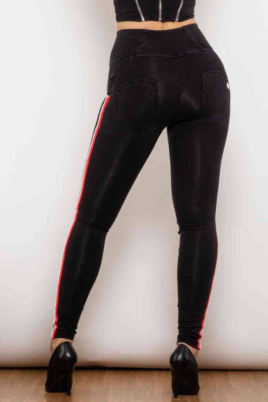 Side Stripe Zip Closure High Waist Jeans