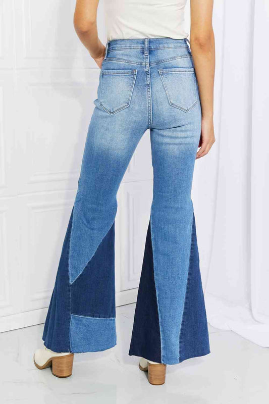 Vibrant Sienna Full Size Color Block Flare Jeans