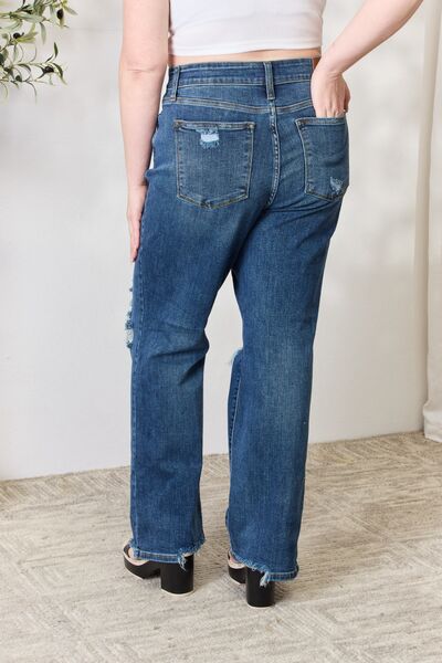 Judy Blue Full Size High Waist 90's Distressed Straight Jeans