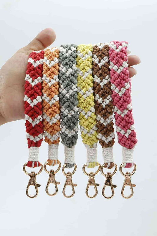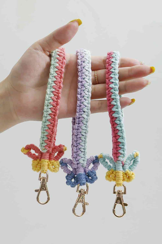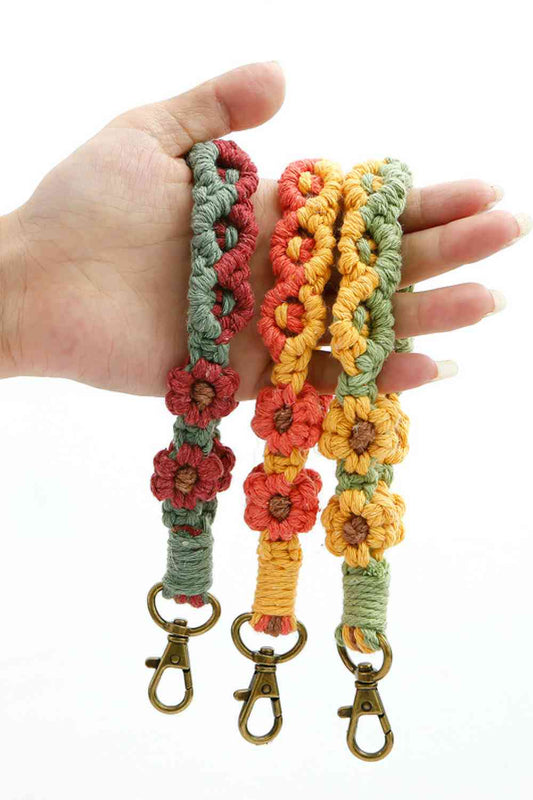Flower Shape Wristlet Alloy Closure Macrame Key Chain