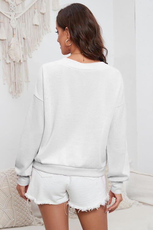 Sold outV-Neck Buttoned Long Sleeve Knit Top