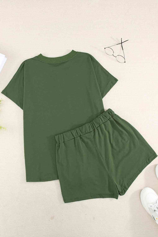 Quarter Button Short Sleeve Top and Shorts Lounge Set