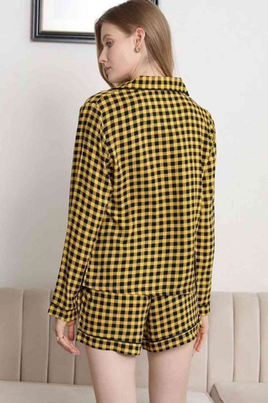 Plaid Long Sleeve Shirt and Shorts Lounge Set