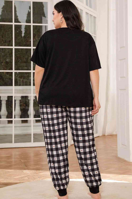 Plus Size Round Neck Short Sleeve Two-Piece Lounge Set