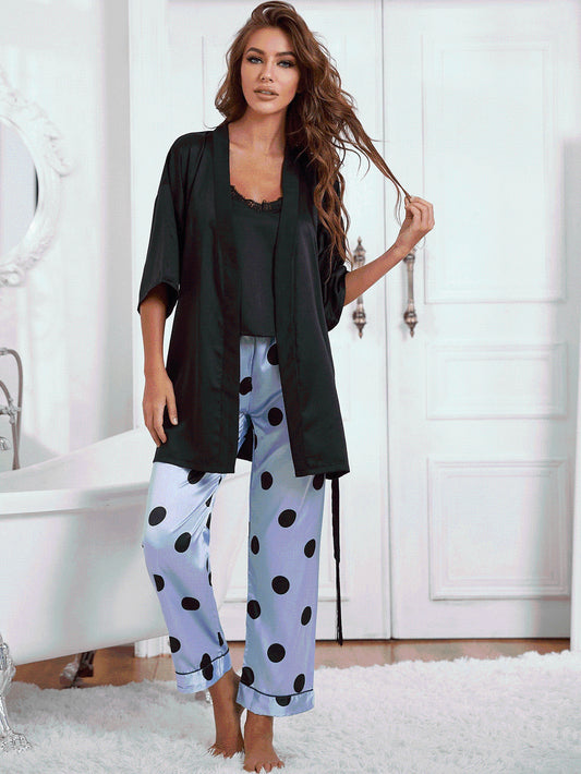 Cami, Robe, and Printed Pants Pajama Set