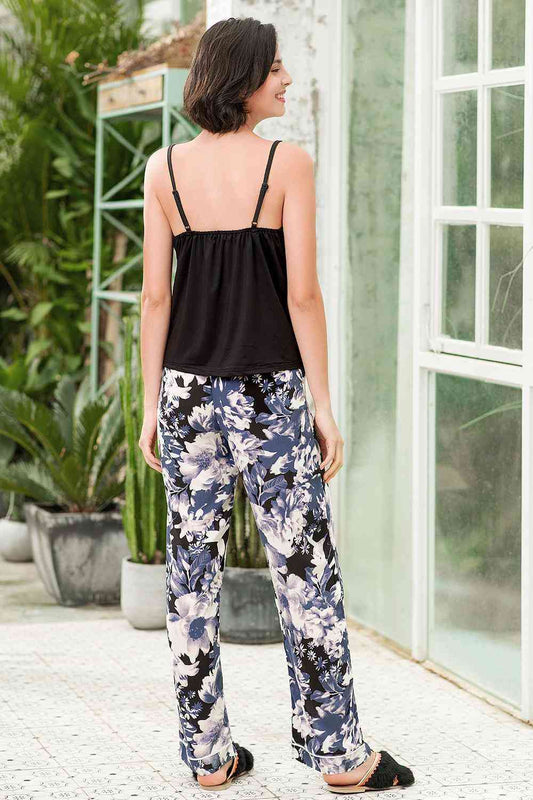 Lace Trim Cami and Floral Pants Lounge Set