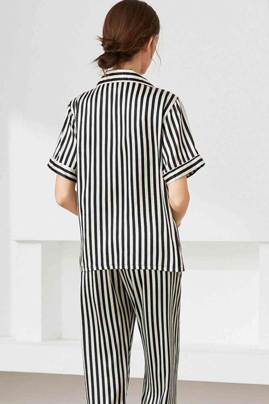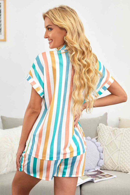 Striped Button-Up Shirt and Shorts Lounge Set
