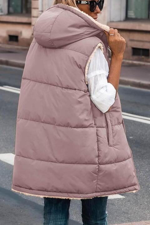 Zip Up Collared Neck Long Sleeve Winter Coat