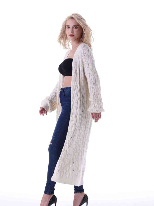 Cable-Knit Open Front Dropped Shoulder Cardigan