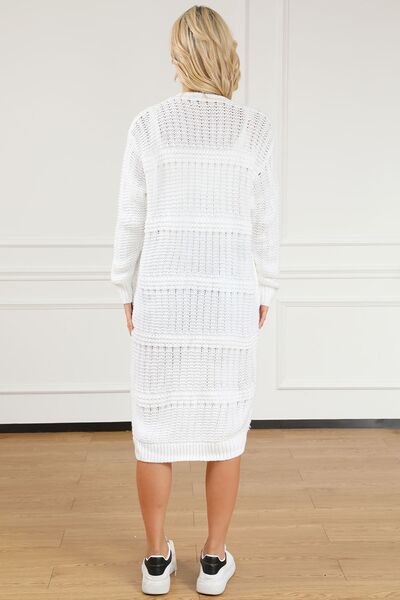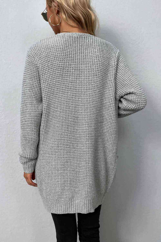 Woven Right Openwork Rib-Knit Slit Cardigan