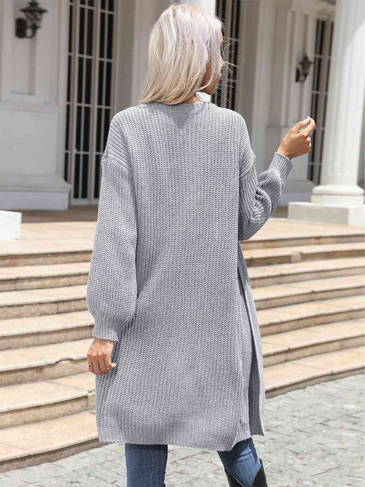 Dropped Shoulder Open Front Longline Cardigan