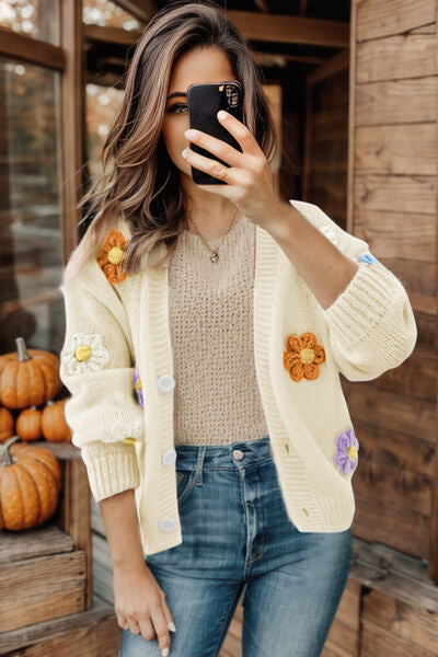 V-Neck Button-Down Dropped Shoulder Cardigan