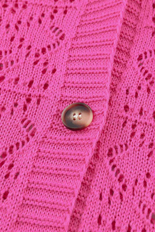 Plus Size Openwork V-Neck Long Sleeve Buttoned Cardigan