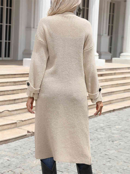 Double Take Waffle Knit Open Front Duster Cardigan With Pockets