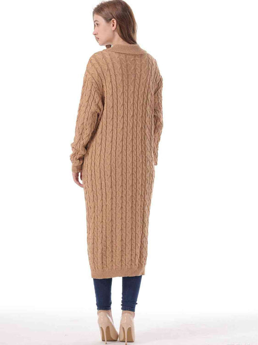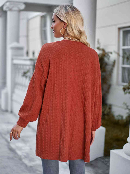 Woven Right Cable-Knit Curved Hem Open Front Cardigan