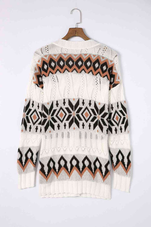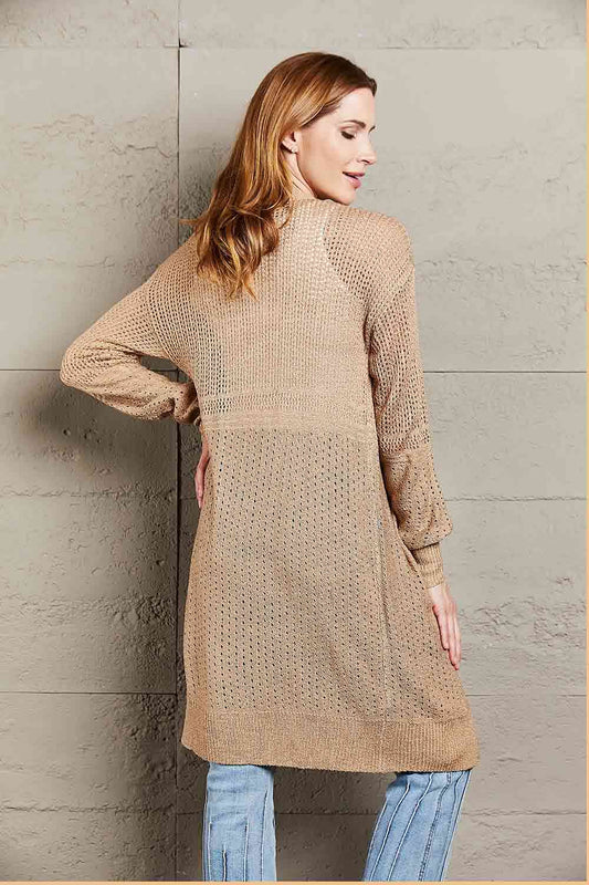 Double Take Openwork Dropped Shoulder Open Front Cardigan
