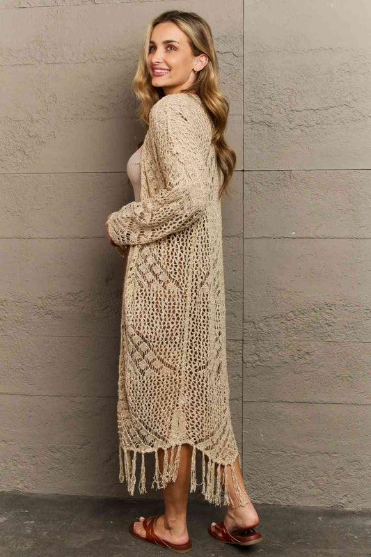 HEYSON Boho Chic Full Size Western Knit Fringe Cardigan