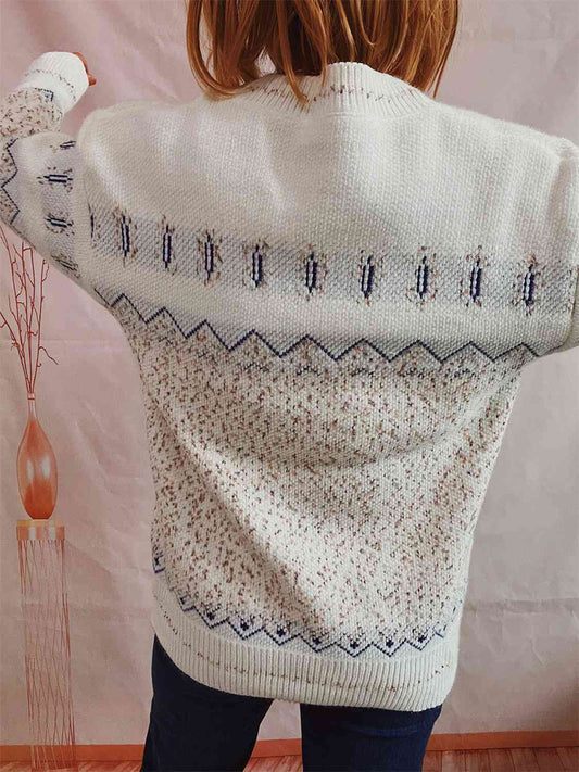 Printed V-Neck Button-Down Long Sleeve Cardigan