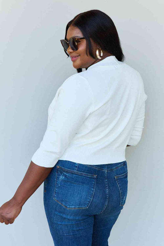 Doublju My Favorite Full Size 3/4 Sleeve Cropped Cardigan in Ivory
