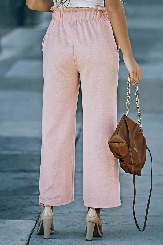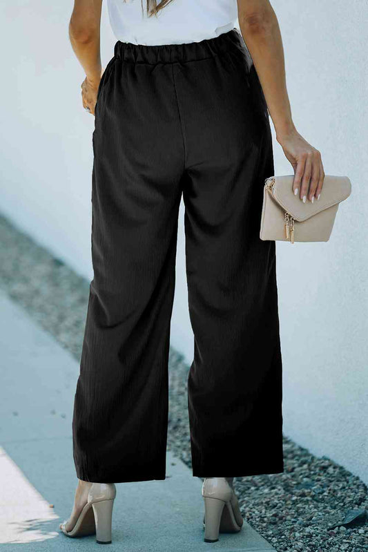 Double Take Drawstring Smocked Waist Wide Leg Pants