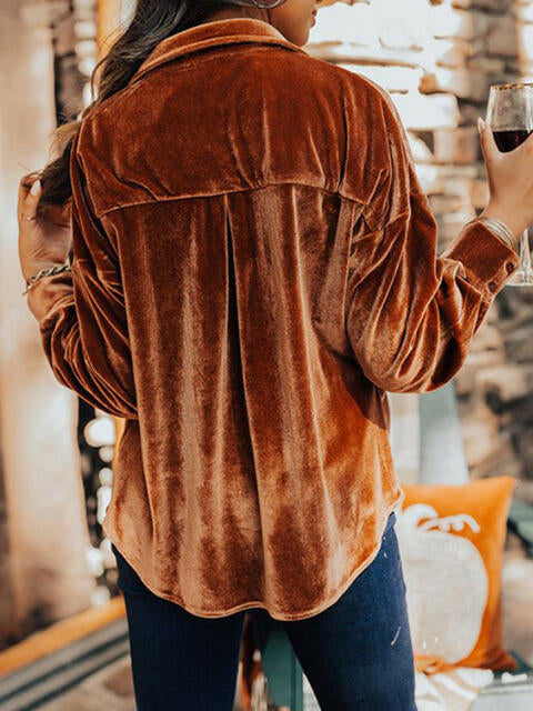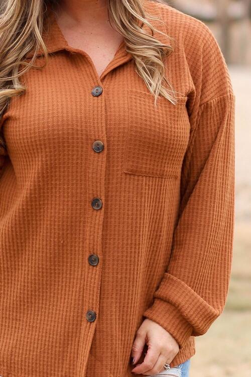 Plus Size Collared Neck Button Front Long Sleeve Shirt