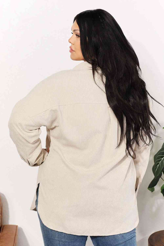 HEYSON Full Size Oversized Corduroy Button-Down Tunic Shirt with Bust Pocket