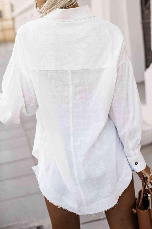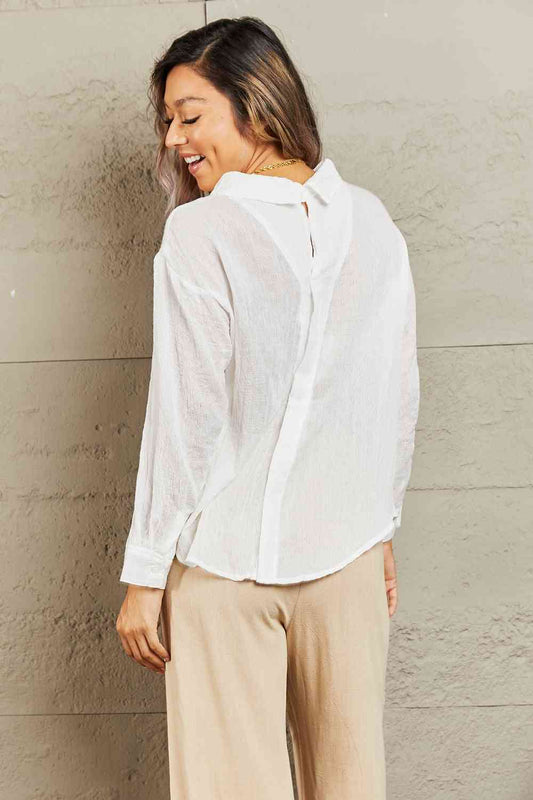 Button Up Collared Neck Long Sleeve Shirt