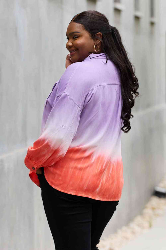 White Birch Relaxed Fit Tie-Dye Button Down Top