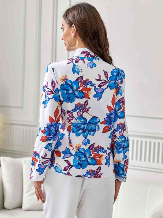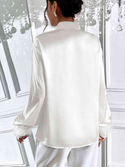 Double Take Lapel Collar Buttoned Puff Sleeve Shirt