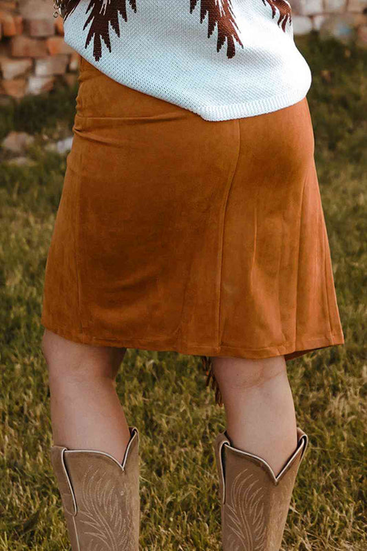 Sold outDouble Take Fringe Trim Wrap Skirt