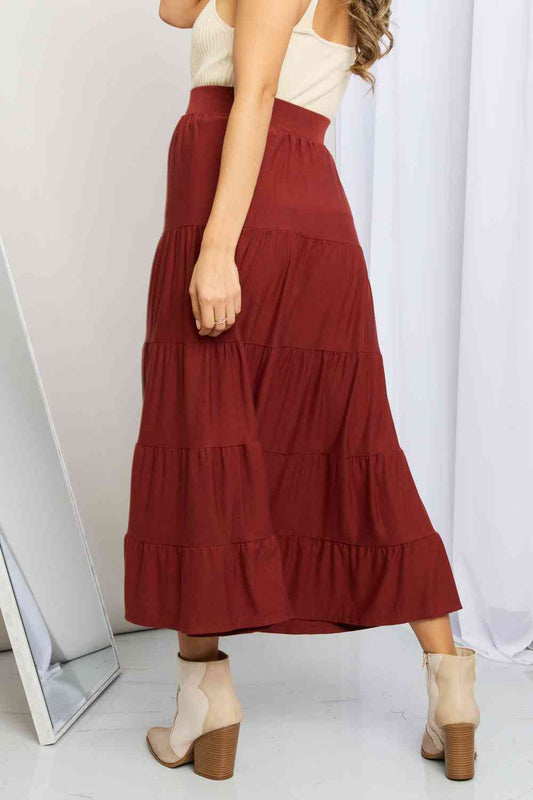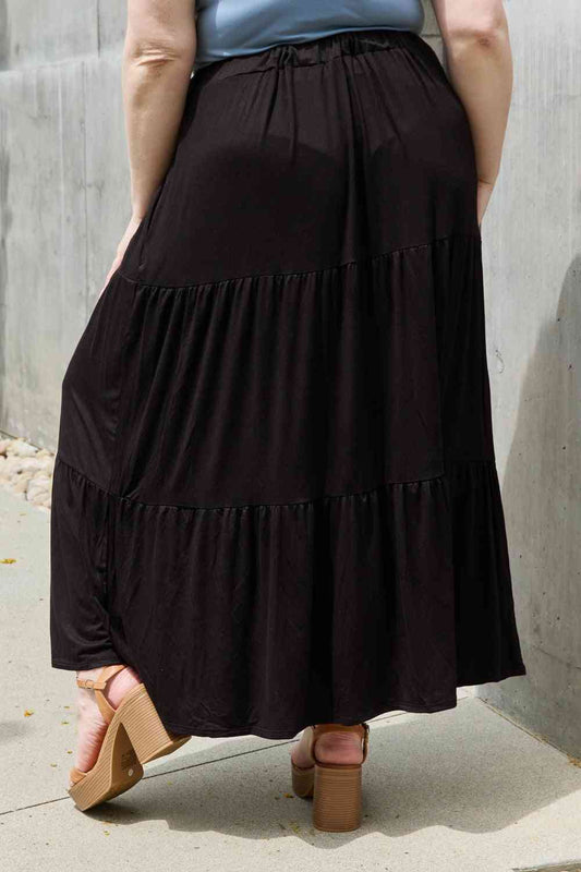 Zenana Full Size Wide Waistband Tiered Midi Skirt