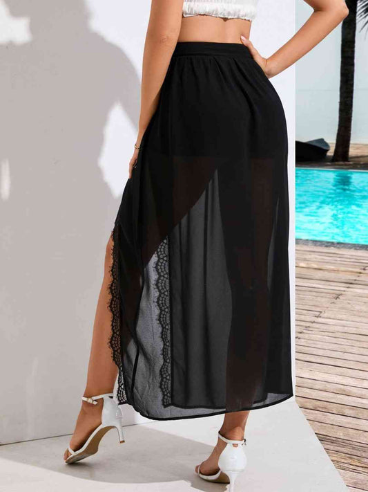 Sold outScalloped Lace Trim Split Skirt