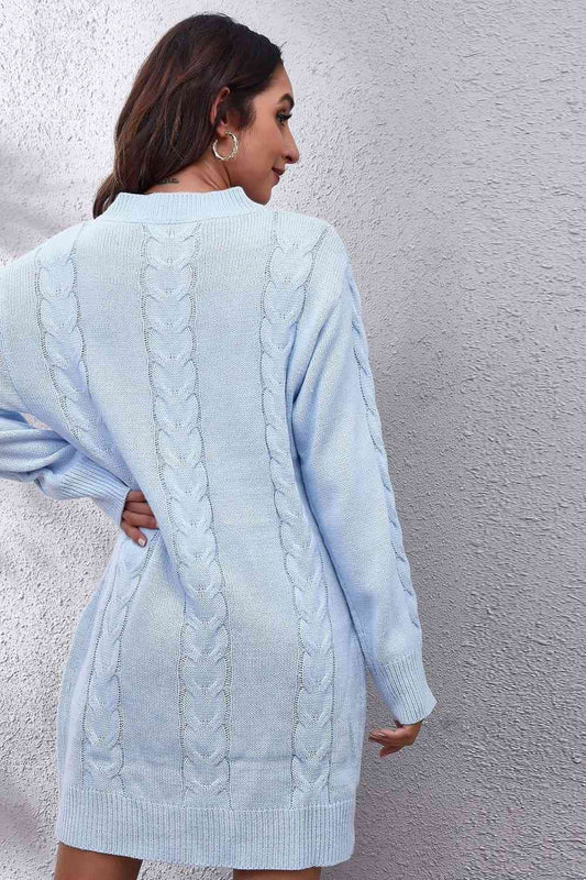 Cable-Knit Round Neck Long Sleeve Mini Sweater Dress