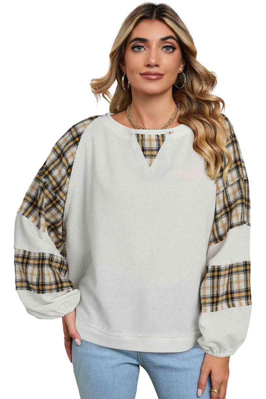 Plaid Drawstring Long Sleeve Slit Hoodie
