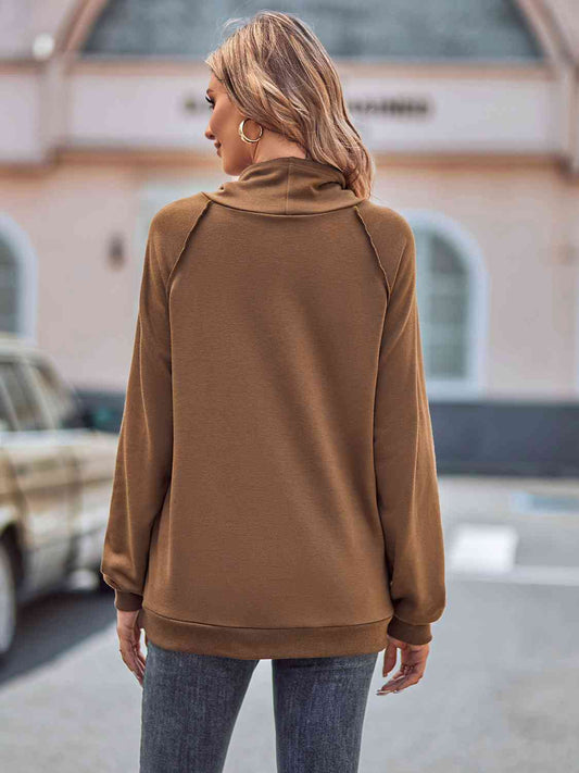 Round Neck Dropped Shoulder Slit Sweatshirt